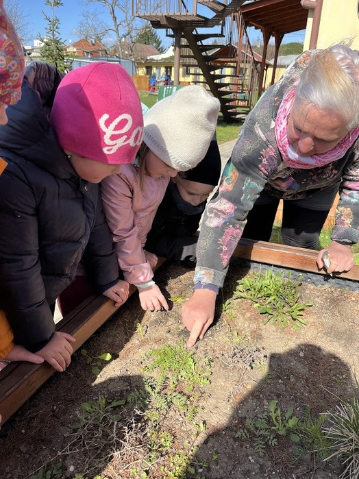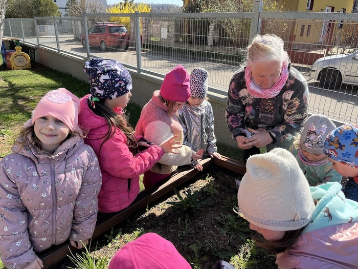 Další spojení s přírodou si pro nás připravila paní Sýkorová z lesní školky. S ní se z nás stávají malí badatelé – učíme se poznávat rostliny, pozorovat hmyz a hlavně rozumět tomu, jak se o přírodu kolem nás správně starat.