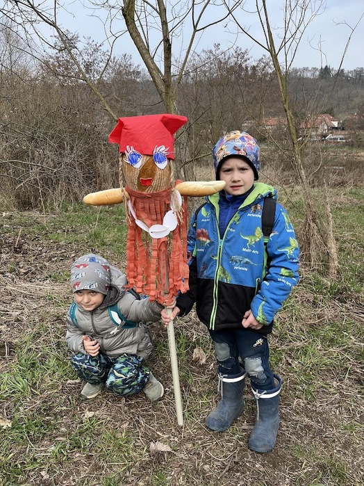 Abychom definitivně přivítali jaro, vyrobili jsme Moranu a společně se třídou Motýlků a Kaštánků jsme ji odnesli k řece. Zima už nemá šanci!