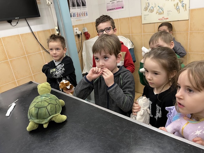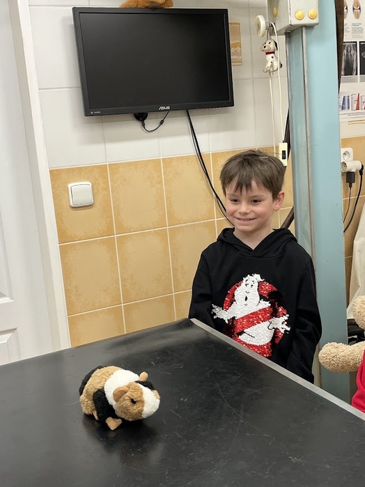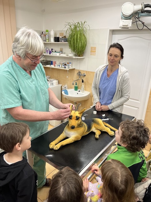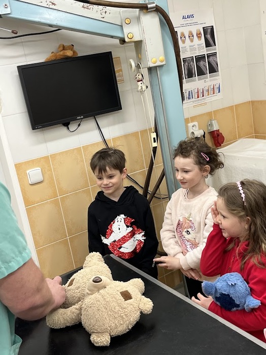 Zvířátka nás provázela skoro na každém kroku. Nahlédli jsme pod pokličku práce pana doktora a zjistili jsme, jak probíhá péče o naše nemocné zvířecí kamarády. Nejsilnějším zážitkem pro nás bylo, že si každý z nás mohl vyzkoušet ošetřit svého plyšového mazlíčka. Už teď máme ve třídě několik budoucích veterinářů.