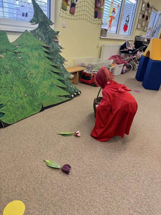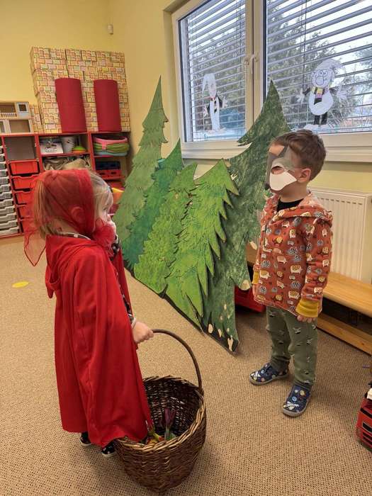 Všechny děti si vyzkoušely různé role a zjistily, že stát na „prknech, co znamenají svět“, je velká zábava. Jako třešničku na dortu k nám zavítalo oblíbené divadélko Vysmáto, které nám zahrálo svou verzi Červené Karkulky, což byla pro malé diváky skvělá inspirace.