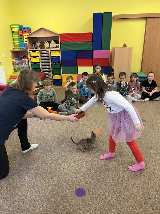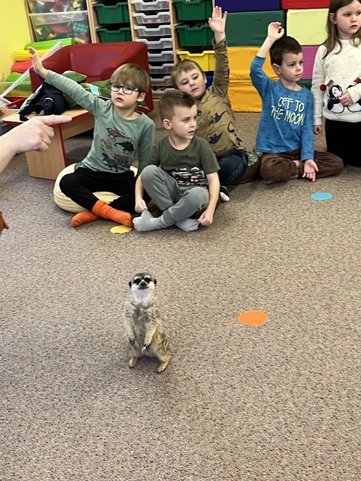 Hned na začátku nás navštívila neobvyklá návštěva - surikaty a mangusta! Děti měly jedinečnou možnost vidět tato hbitá zvířátka z blízka a dozvědět se, jak žijí.