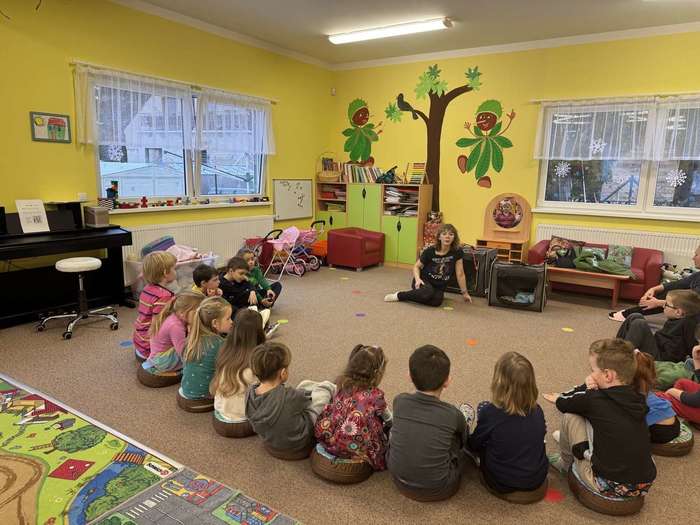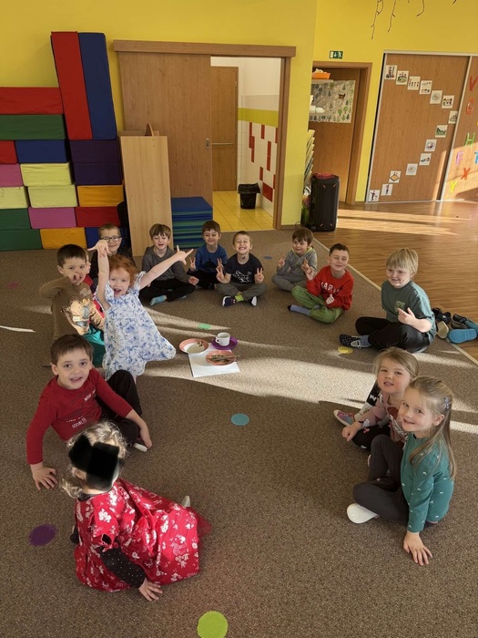 ředškoláci také navštívili vyučování v ZŠ Zdeňky Braunerové a do školky za námi přijelo divadélko Vysmátko s pohádkou O Červené karkulce.