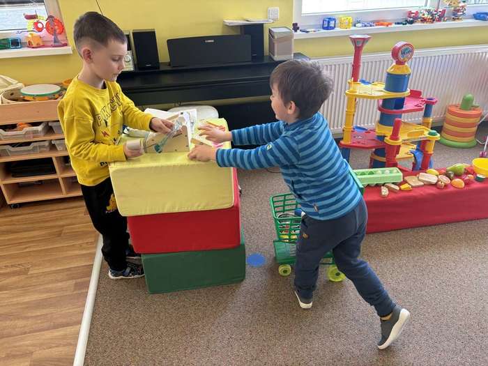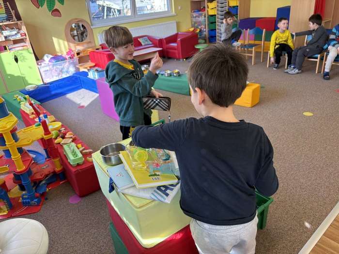 V dalším týdnu jsme si hráli na různá řemesla – byli jsme zedníci, kuchaři i prodavači a povídali jsme si o různých povoláních.